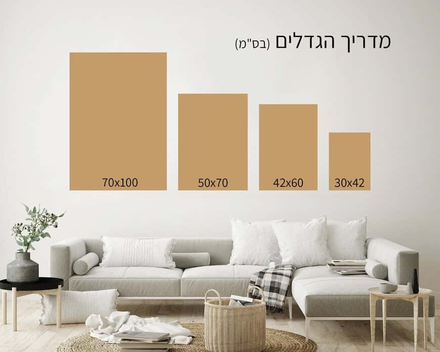 30x42 ס"מ 42x60 ס"מ +80% 50x70 ס"מ +150% 70x100 ס"מ +240%